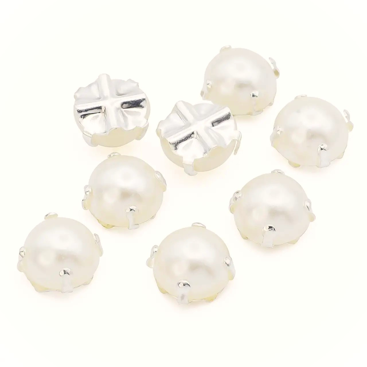 Стрази в срібній оправі Круглі 10 мм Перлинний 10 шт.