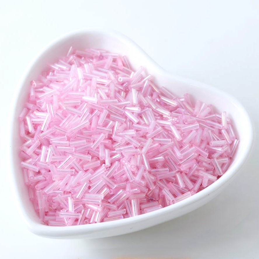 Бісер стеклярус блискучий 2х6 мм 50 г Рожевий райдужний ніжний