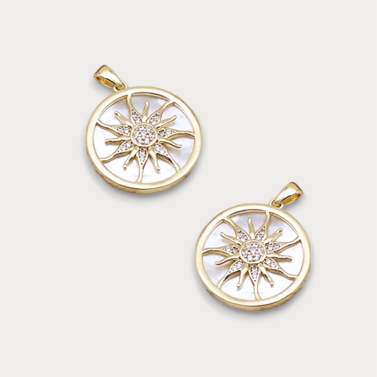 Кулон Solar circle з перламутром та стразами мідний 18К позолота 29х20 мм 1 шт. Золото